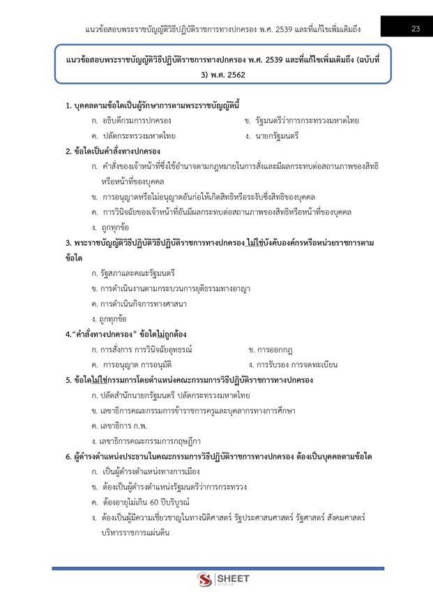 – แนวข้อสอบสรุปสาระสำคัญพระราชบัญญัติวิธีปฏิบัติราชการทางปกครอง พ.ศ.2539 และแก้ไขเพิ่มเติมถึง (ฉบับที่ 3) พ.ศ.2562