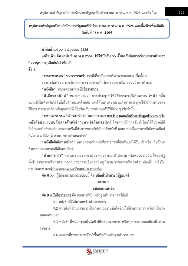 – แนวข้อสอบสรุปสาระสำคัญระเบียบสำนักนายกรัฐมนตรีว่าด้วยงานสารบรรณ พ.ศ.2526 และที่แก้ไขเพิ่มเติมถึง (ฉบับที่ 4) พ.ศ.2564