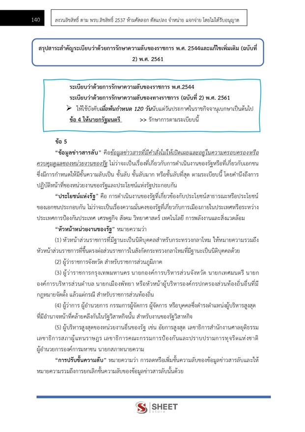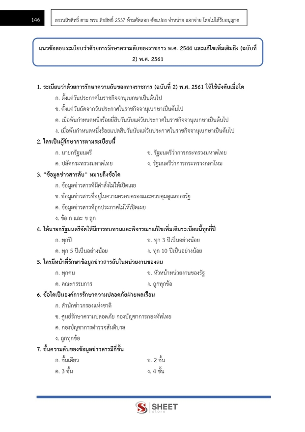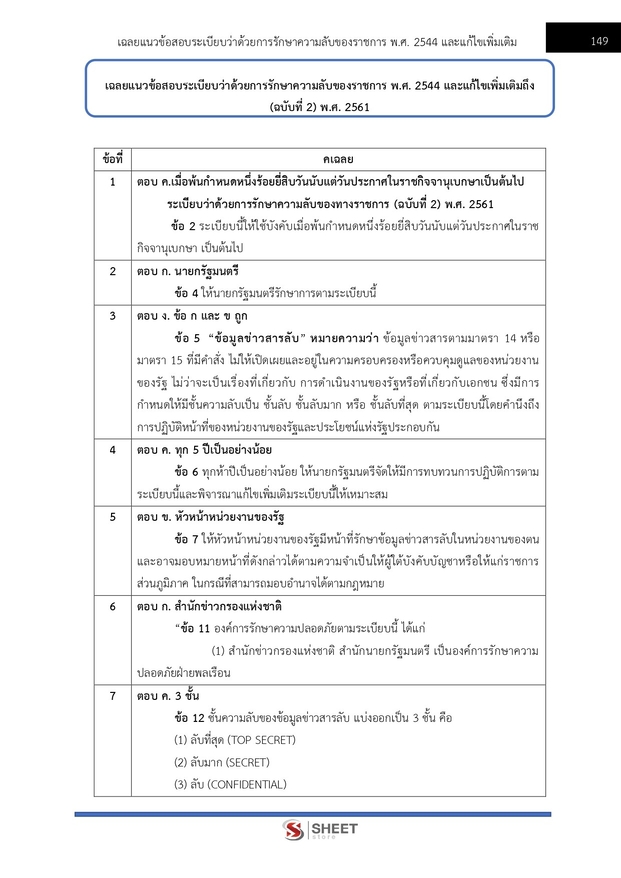 – แนวข้อสอบสรุปสาระสำคัญระเบียบว่าด้วยการรักษาความลับของราชการ พ.ศ.2544 และแก้ไขเพิ่มเติม (ฉบับที่ 2) พ.ศ.2561