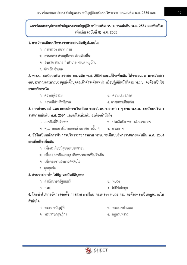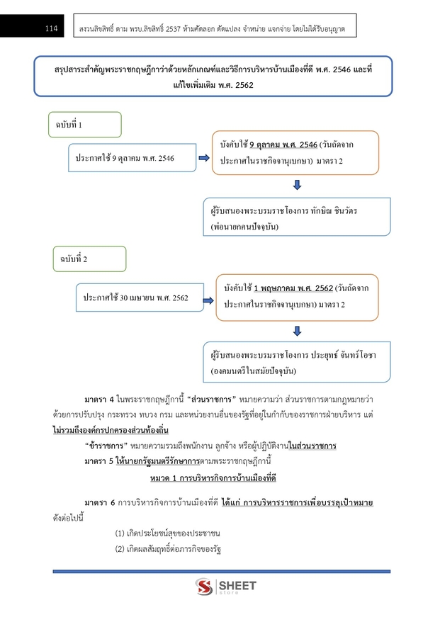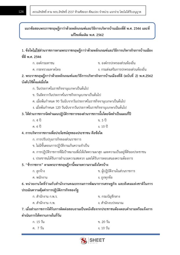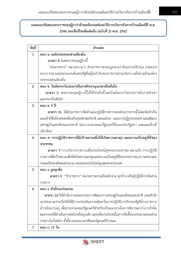 – แนวข้อสอบสรุปสาระสำคัญพระราชกฤษฎีกาว่าด้วยหลักเกณฑ์และวิธีการบริหารกิจการบ้านเมืองที่ดี พ.ศ.2546 และที่แก้ไขเพิ่มเติมถึง (ฉบับที่ 2) พ.ศ.2562