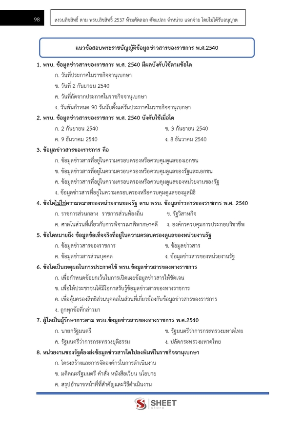 – แนวข้อสอบสรุปสาระสำคัญพระราชบัญญัติข้อมูลข่าวสารของราชการ พ.ศ.2540