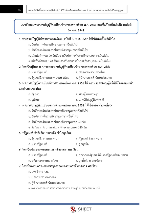 – แนวข้อสอบสรุปสาระสำคัญพระราชบัญญัติระเบียบข้าราชการพลเรือน พ.ศ.2551 และที่แก้ไขเพิ่มเติมถึง (ฉบับที่ 3) พ.ศ.2562