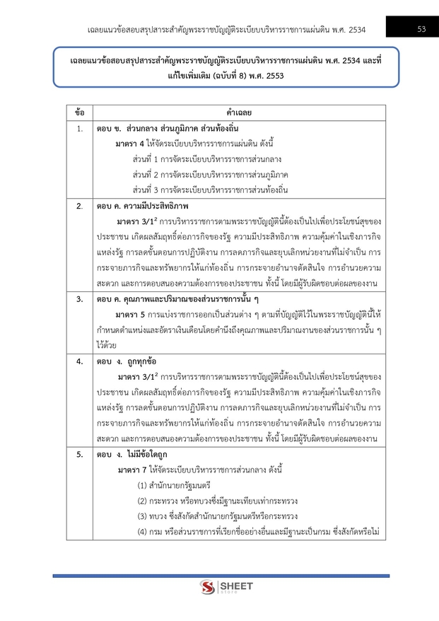 – แนวข้อสอบสรุปพระราชบัญญัติระเบียบบริหารราชการแผ่นดิน พ.ศ.2534 และที่แก้ไขเพิ่มเติมถึง (ฉบับที่ 8) พ.ศ.2553