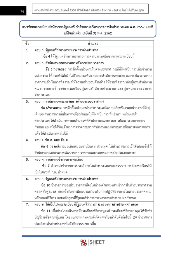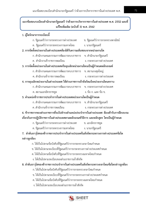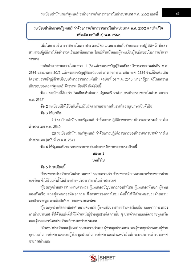 – แนวข้อสอบระเบียบสำนักนายกรัฐมนตรีว่าด้วยการบริหารราชการในต่างประเทศ พ.ศ. 2552 และที่แก้ไขเพิ่มเติม (ฉบับที่ 3) พ.ศ. 2562