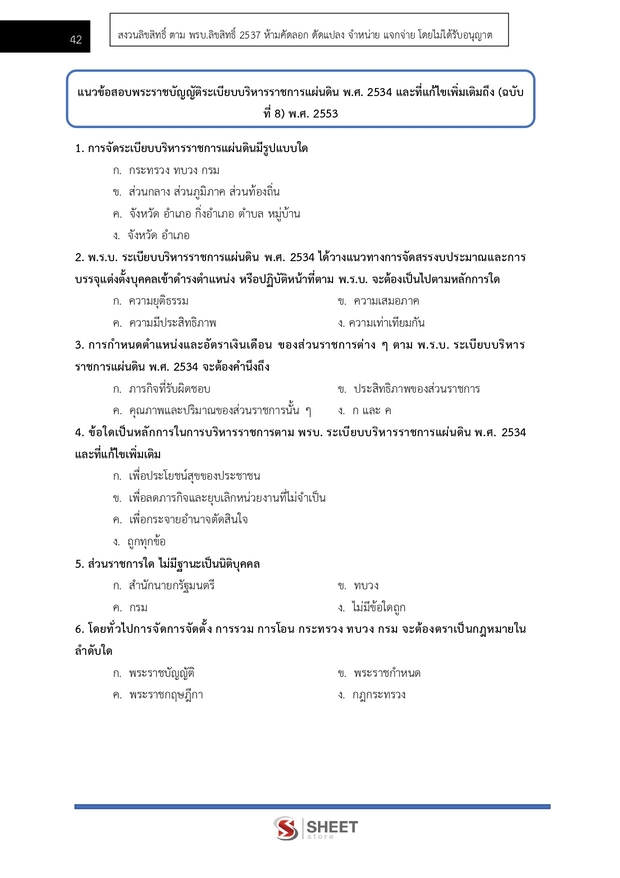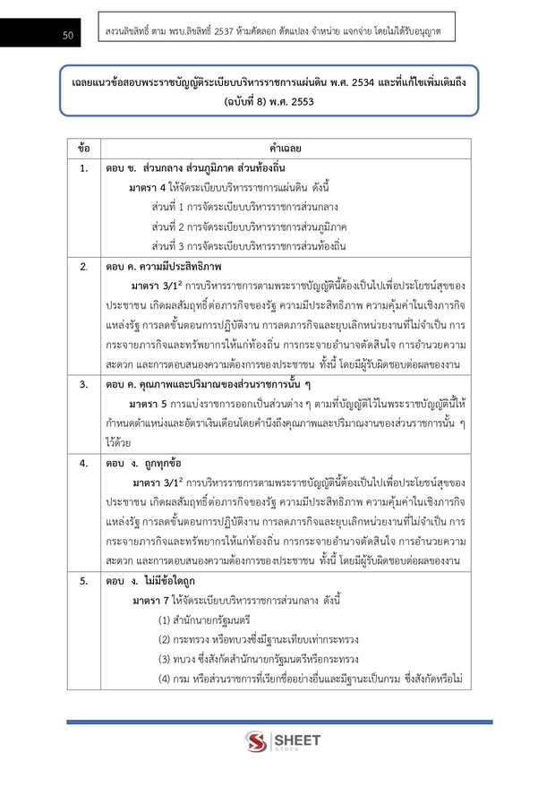 – แนวข้อสอบสรุปพระราชบัญญัติระเบียบบริหารราชการแผ่นดิน พ.ศ. 2534 และที่แก้ไขเพิ่มเติมถึง (ฉบับที่ 8) พ.ศ. 2553