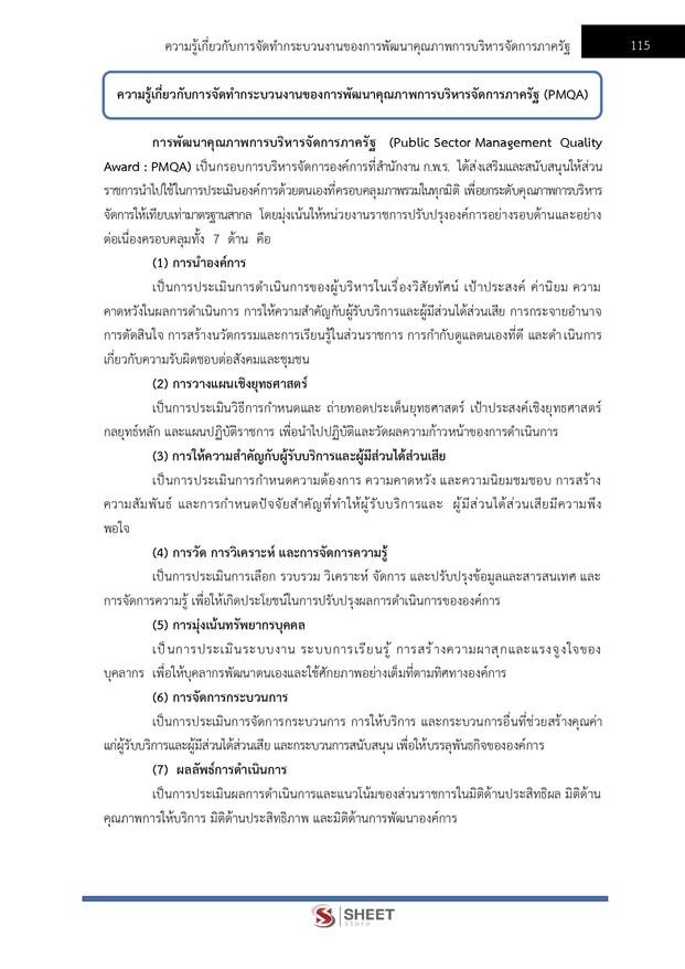 – ความรู้เกี่ยวกับการจัดทำกระบวนงานของการพัฒนาคุณภาพการบริหารจัดการภาครัฐ (PMQA)