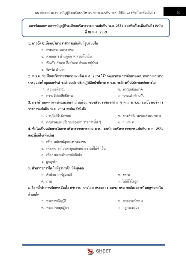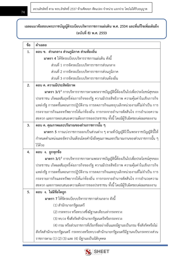 – แนวข้อสอบสรุปพระราชบัญญัติระเบียบบริหารราชการแผ่นดิน พ.ศ. 2534 และที่แก้ไขเพิ่มเติมถึง (ฉบับที่ 8) พ.ศ. 2553