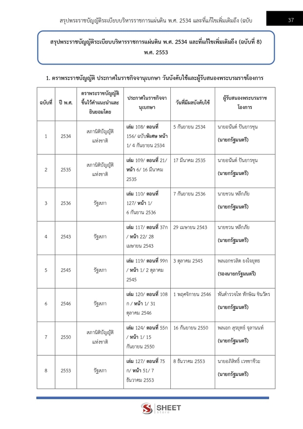 – สรุปพระราชบัญญัติระเบียบบริหารราชการแผ่นดิน พ.ศ. 2534 และที่แก้ไขเพิ่มเติมถึง (ฉบับที่ 8) พ.ศ. 2553