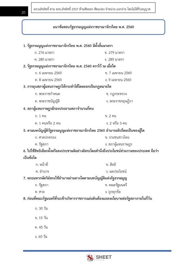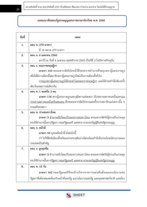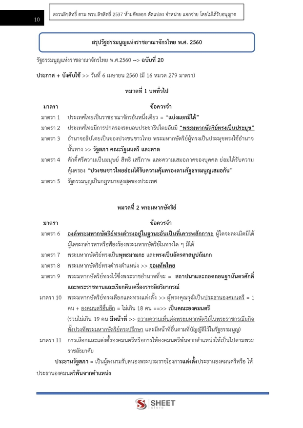 – แนวข้อสอบสรุปรัฐธรรมนูญแห่งราชอาณาจักรไทย พ.ศ. 2560