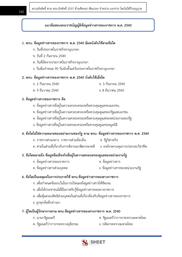 – แนวข้อสอบสรุปสาระสำคัญพระราชบัญญัติข้อมูลข่าวสารของราชการ พ.ศ. 2540