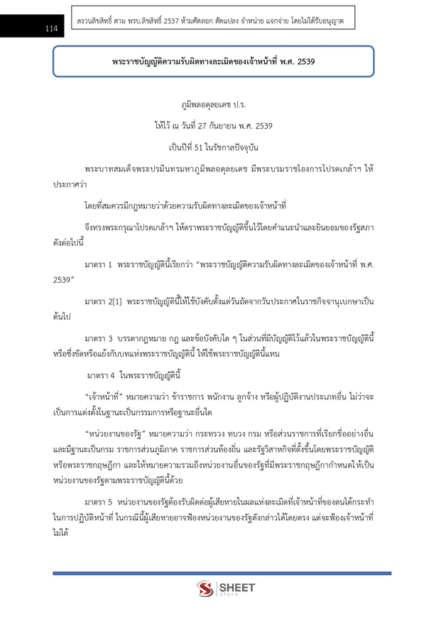 – พระราชบัญญัติความรับผิดทางละเมิดของเจ้าหน้าที่ พ.ศ. 2539