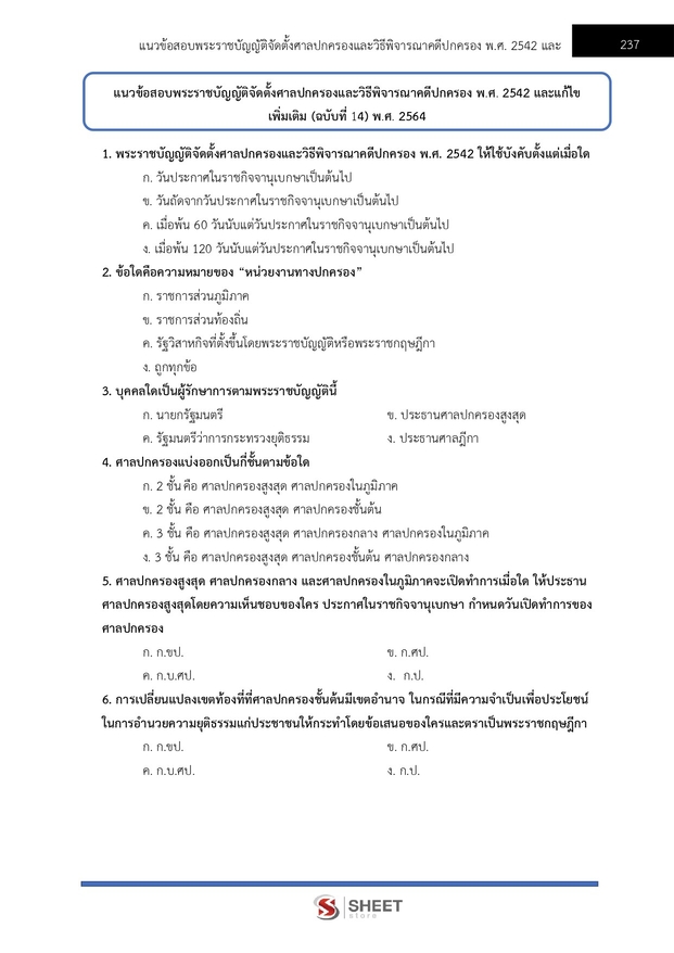 – แนวข้อสอบพระราชบัญญัติจัดตั้งศาลปกครองและวิธีพิจารณาคดีปกครอง พ.ศ. 2542 และแก้ไขเพิ่มเติม (ฉบับที่ 14) พ.ศ. 2564