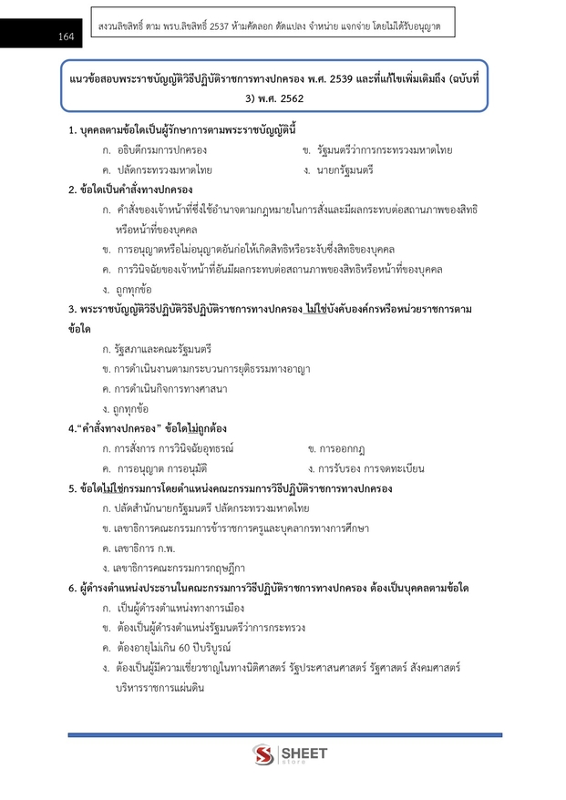 – แนวข้อสอบพระราชกฤษฎีกาว่าด้วยหลักเกณฑ์และวิธีการบริหารกิจการบ้านเมืองที่ดี พ.ศ. 2546 และที่แก้ไขเพิ่มเติมถึง (ฉบับที่ 2) พ.ศ. 2562