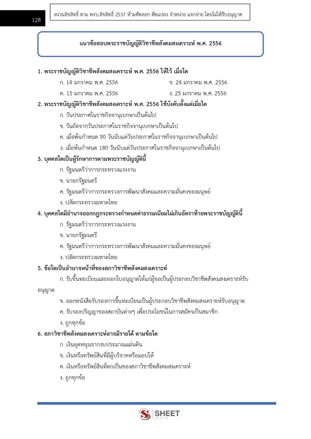 – แนวข้อสอบพระราชบัญญัติวิชาชีพสังคมสงเคราะห์ พ.ศ. 2556