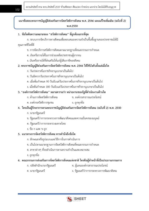 – แนวข้อสอบพระราชบัญญัติส่งเสริมการจัดสวัสดิการสังคม พ.ศ. 2546 และแก้ไขเพิ่มเติม (ฉบับที่ 2) พ.ศ. 2550