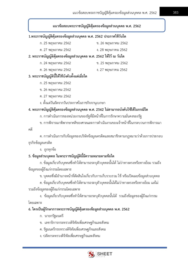 – แนวข้อสอบพระราชบัญญัติคุ้มครองข้อมูลส่วนบุคคล พ.ศ. 2562
