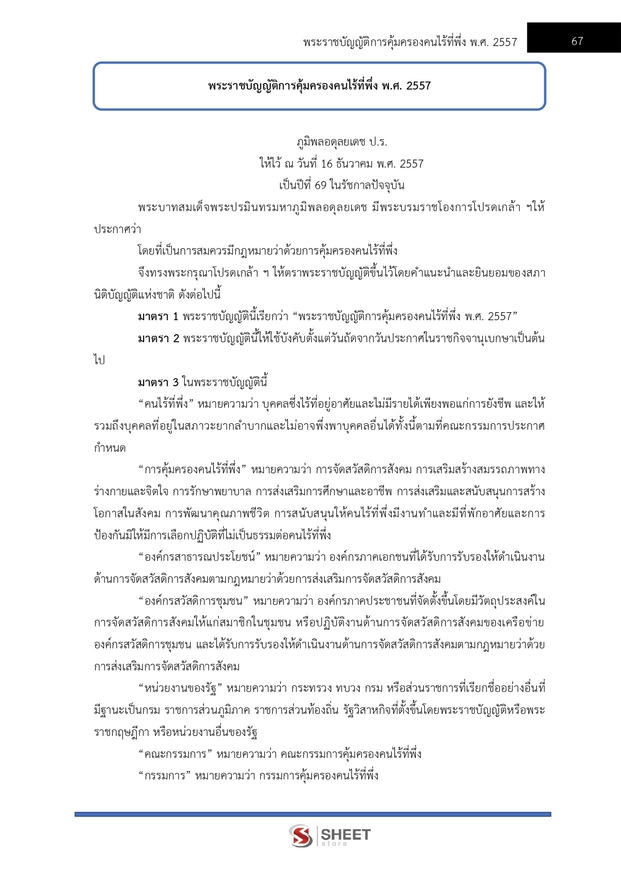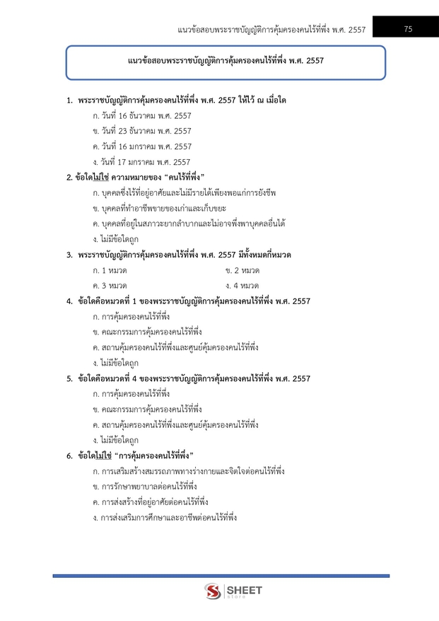 – แนวข้อสอบพระราชบัญญัติการคุ้มครองคนไร้ที่พึ่ง พ.ศ. 2557