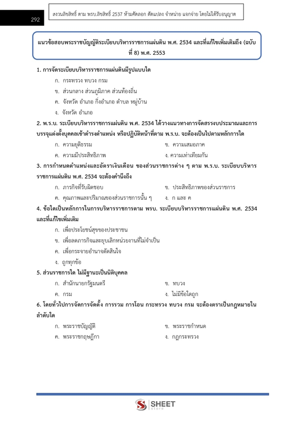 – แนวข้อสอบสรุปพระราชบัญญัติระเบียบบริหารราชการแผ่นดิน พ.ศ. 2534 และที่แก้ไขเพิ่มเติมถึง (ฉบับที่ 8) พ.ศ. 2553