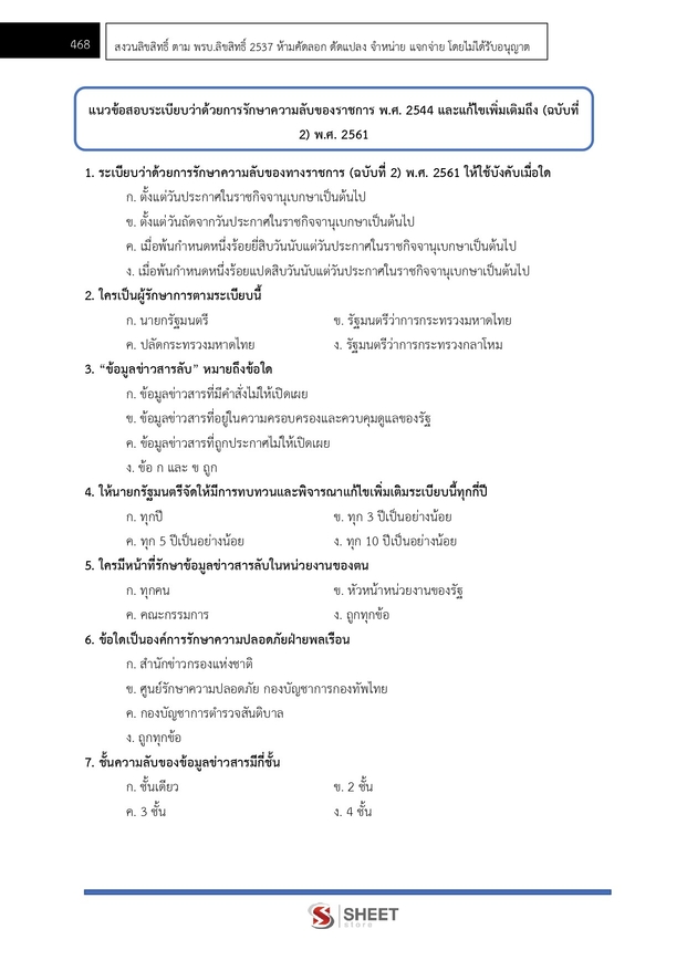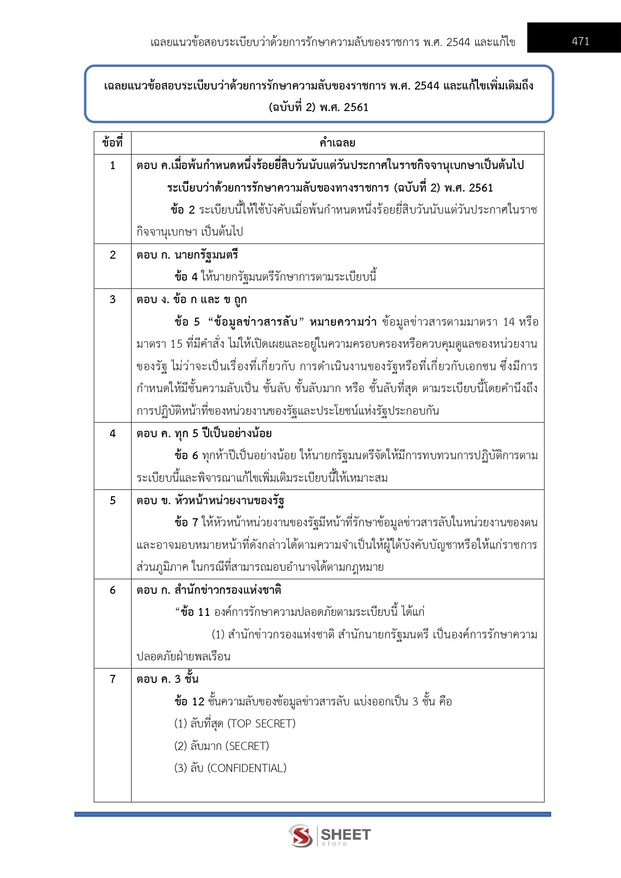 – แนวข้อสอบสรุปสาระสำคัญระเบียบว่าด้วยการรักษาความลับของราชการ พ.ศ. 2544 และแก้ไขเพิ่มเติม (ฉบับที่ 2) พ.ศ. 2561