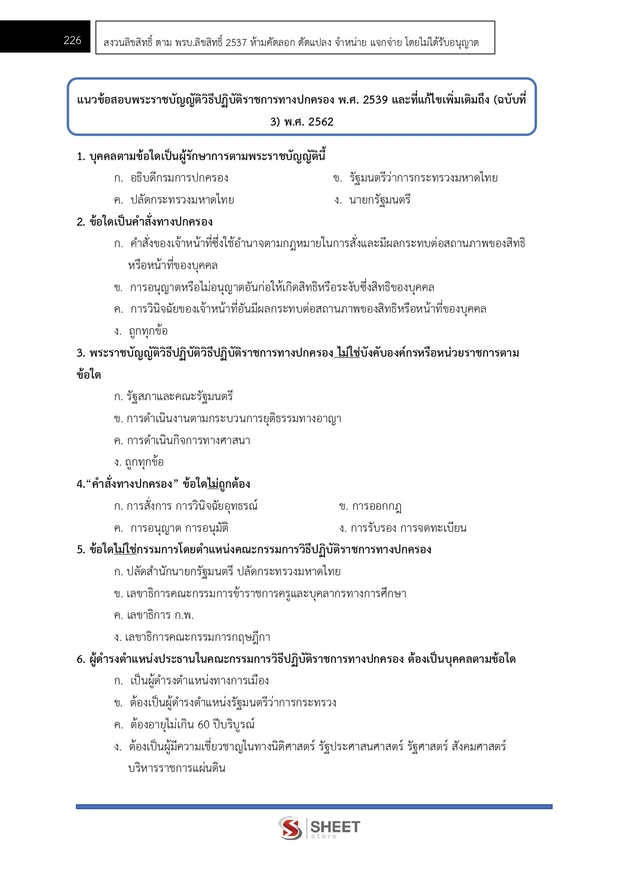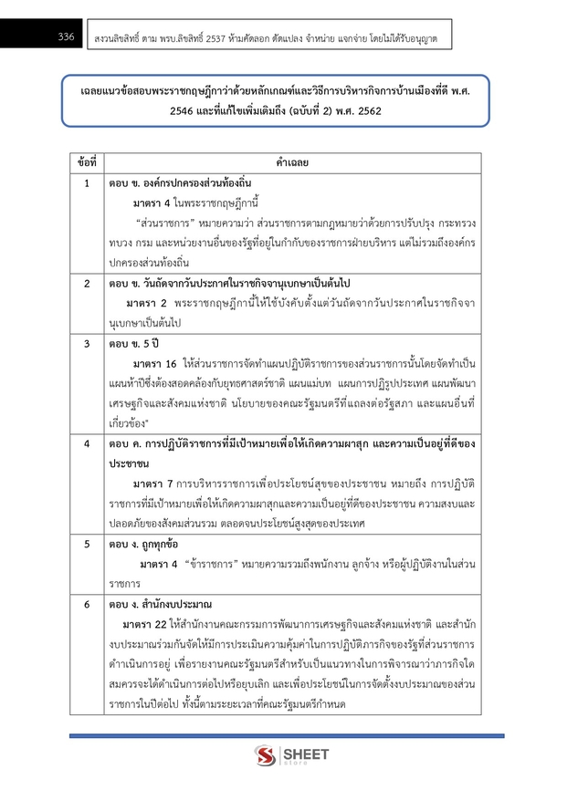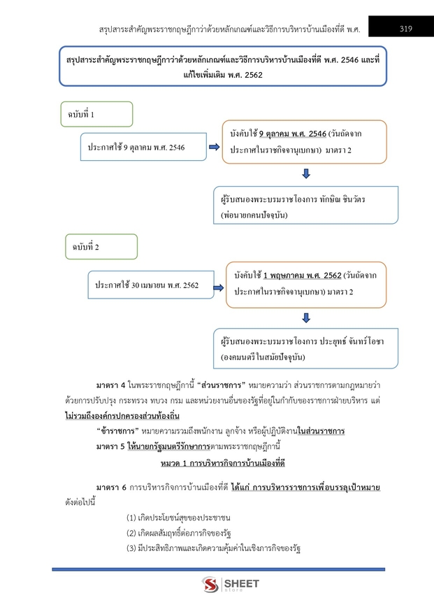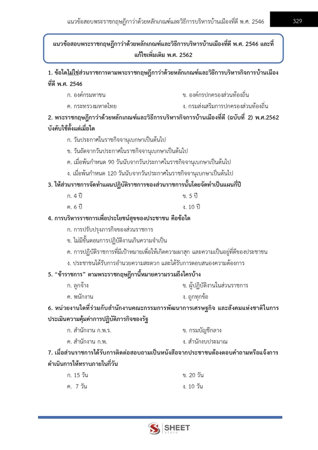 – แนวข้อสอบสรุปสาระสำคัญพระราชกฤษฎีกาว่าด้วยหลักเกณฑ์และวิธีการบริหารกิจการบ้านเมืองที่ดี พ.ศ. 2546 และที่แก้ไขเพิ่มเติมถึง (ฉบับที่ 2) พ.ศ. 2562