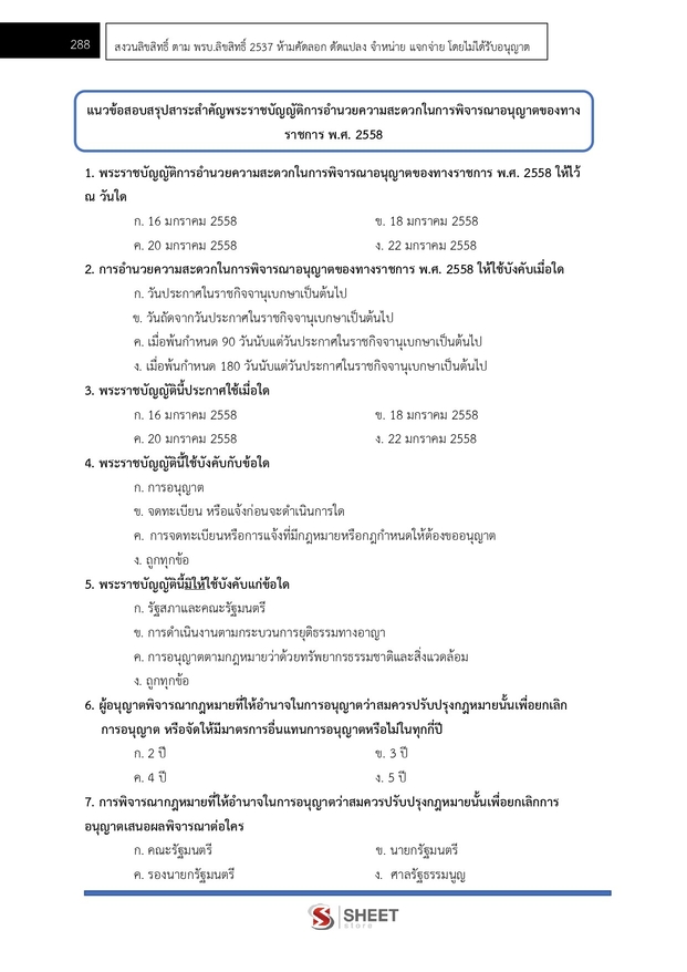 – แนวข้อสอบสรุปสาระสำคัญพระราชบัญญัติการอำนวยความสะดวกในการพิจารณาอนุญาตของทางราชการ พ.ศ. 2558