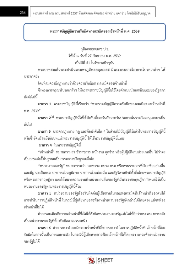 – พระราชบัญญัติความรับผิดทางละเมิดของเจ้าหน้าที่ พ.ศ. 2539