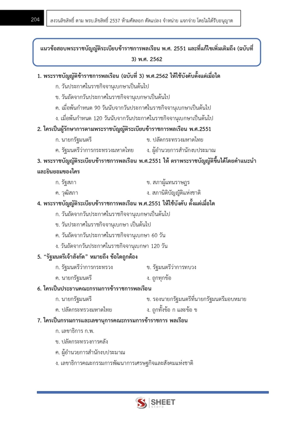 – แนวข้อสอบสรุปสาระสำคัญพระราชบัญญัติระเบียบข้าราชการพลเรือน พ.ศ. 2551 และที่แก้ไขเพิ่มเติมถึง (ฉบับที่ 3) พ.ศ. 2562