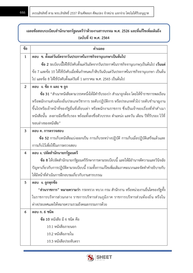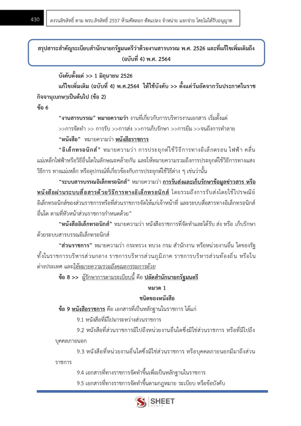 – แนวข้อสอบสรุปสาระสำคัญระเบียบสำนักนายกรัฐมนตรีว่าด้วยงานสารบรรณ พ.ศ. 2526 และที่แก้ไขเพิ่มเติมถึง (ฉบับที่ 4) พ.ศ. 2564
