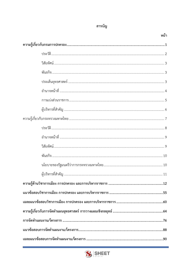 รายละเอียด สารบัญ แนวข้อสอบ พนักงานวิเคราะห์นโยบายและแผน กรมการปกครอง 2568
