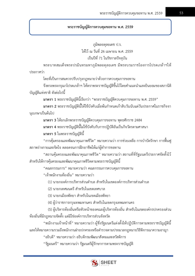 – แนวข้อสอบพระราชบัญญัติการควบคุมขอทาน พ.ศ. 2559