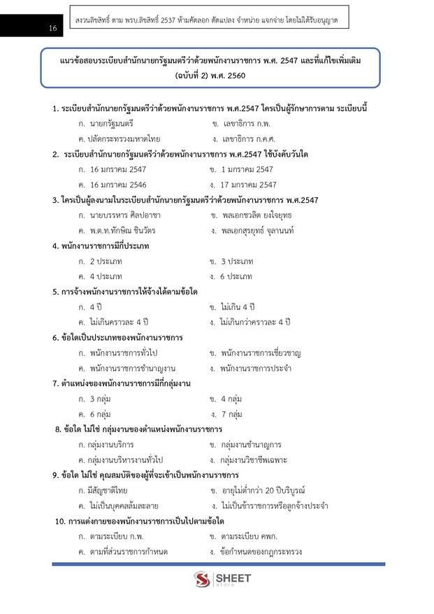 – แนวข้อสอบระเบียบสำนักนายกรัฐมนตรีว่าด้วยพนักงานราชการ พ.ศ. 2547 และแก้ไขเพิ่มเติม (ฉบับที่ 2) พ.ศ. 2560