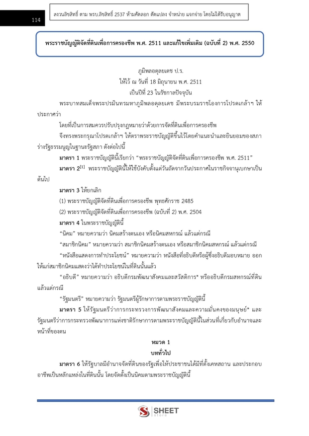 – แนวข้อสอบพระราชบัญญัติจัดที่ดินเพื่อการครองชีพ พ.ศ. 2511 และแก้ไขเพิ่มเติม (ฉบับที่ 2 ) พ.ศ. 2550