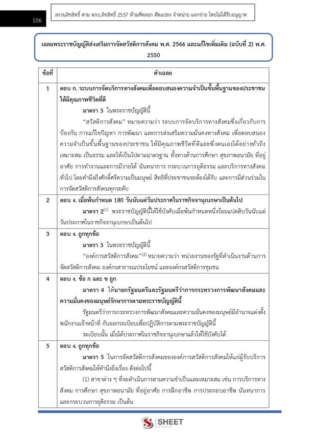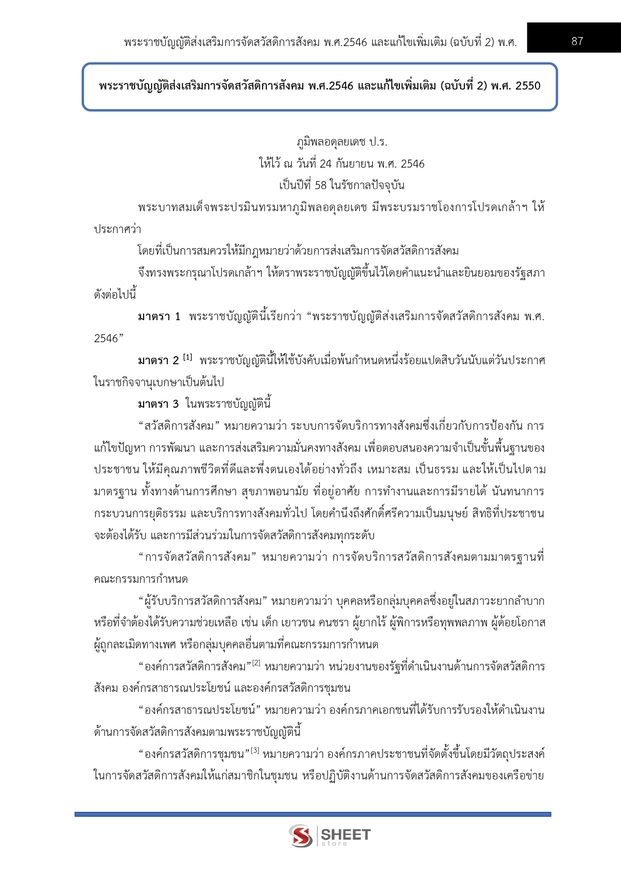 – แนวข้อสอบพระราชบัญญัติส่งเสริมการจัดสวัสดิการสังคม พ.ศ. 2546 และแก้ไขเพิ่มเติม (ฉบับที่ 2) พ.ศ. 2550