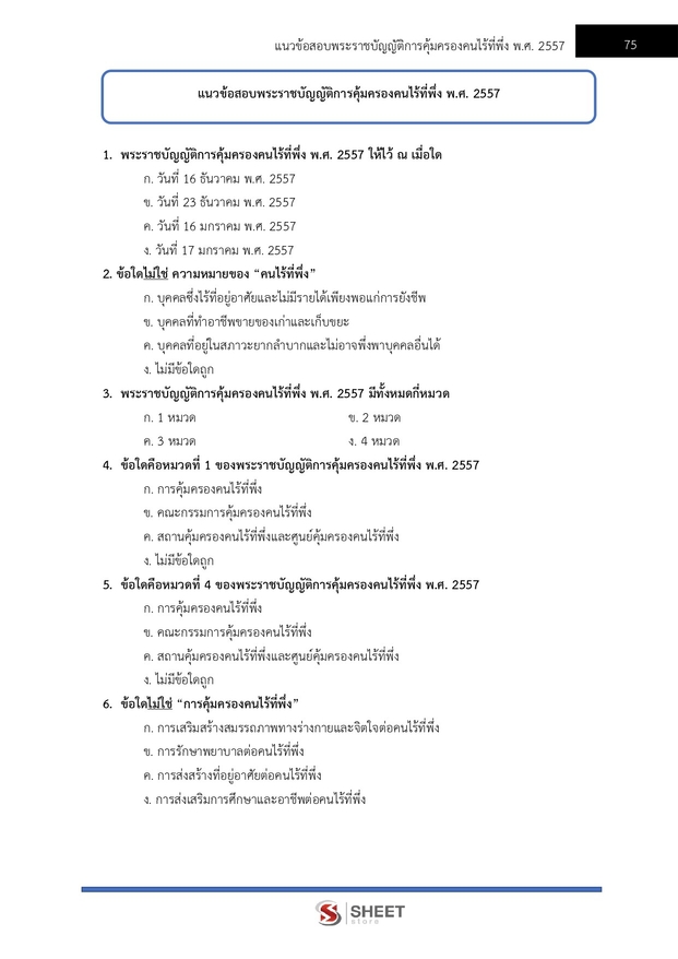 – แนวข้อสอบพระราชบัญญัติการคุ้มครองคนไร้ที่พึ่ง พ.ศ. 2557