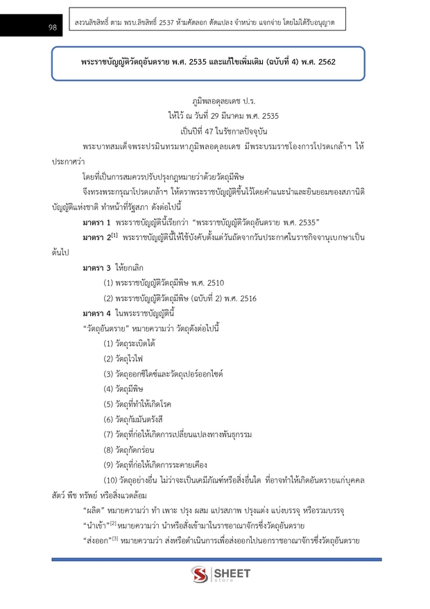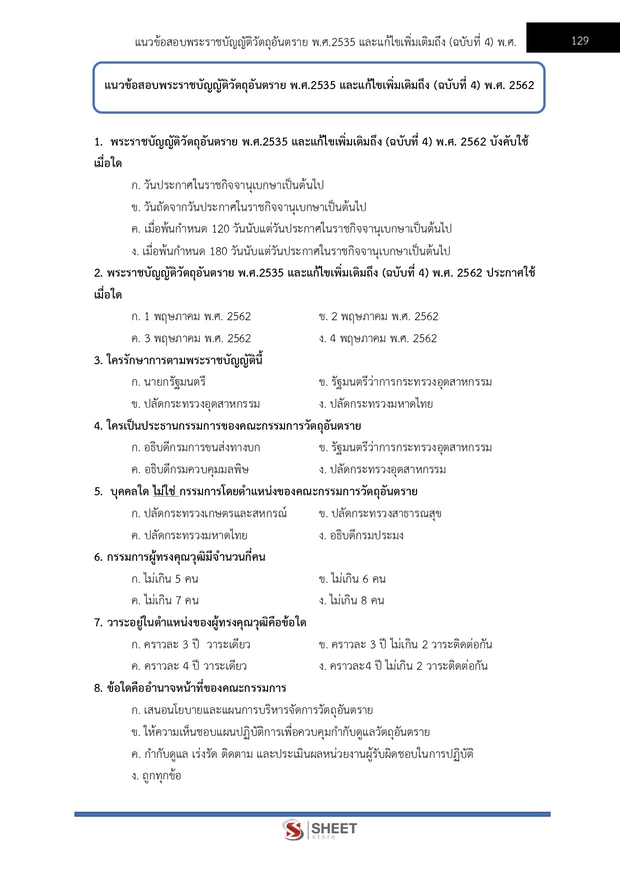 – แนวข้อสอบพระราชบัญญัติวัตถุอันตราย พ.ศ. 2535 และแก้ไขเพิ่มเติม (ฉบับที่ 4) พ.ศ. 2562