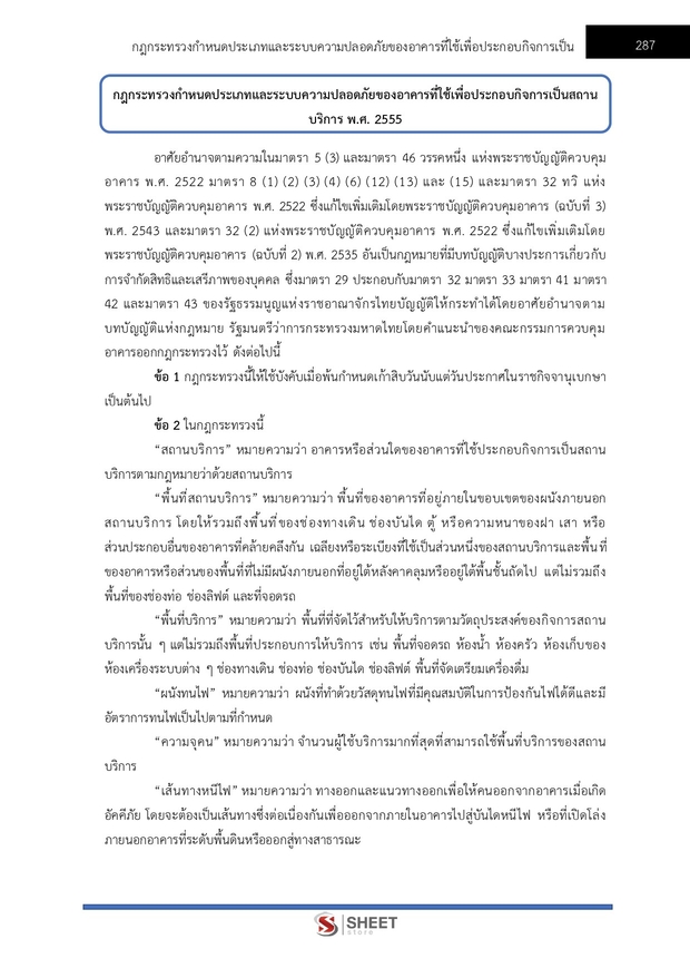 – แนวข้อสอบกฎกระทรวงกำหนดประเภทและระบบความปลอดภัยของอาคารที่ใช้เพื่อประกอบกิจการเป็นสถานบริการ พ.ศ. 2555