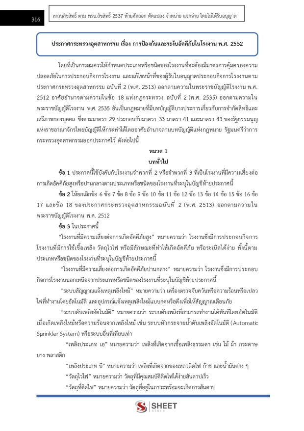 – แนวข้อสอบประกาศกระทรวงอุตสาหกรรม เรื่อง การป้องกันและระงับอัคคีภัยในโรงงาน พ.ศ. 2552