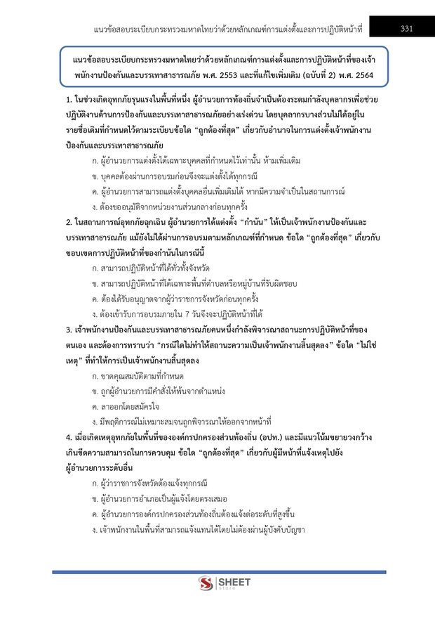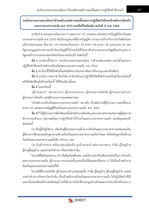 – แนวข้อสอบระเบียบกระทรวงมหาดไทยว่าด้วยหลักเกณฑ์การแต่งตั้งและการปฏิบัติหน้าที่ของเจ้าพนักงานป้องกันและบรรเทาสาธารณภัย พ.ศ. 2553 และที่แก้ไขเพิ่มเติม (ฉบับที่ 2) พ.ศ. 2564