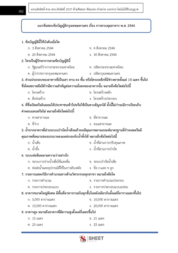 – แนวข้อสอบข้อบัญญัติกรุงเทพมหานคร เรื่อง ควบคุมอาคาร พ.ศ. 2544