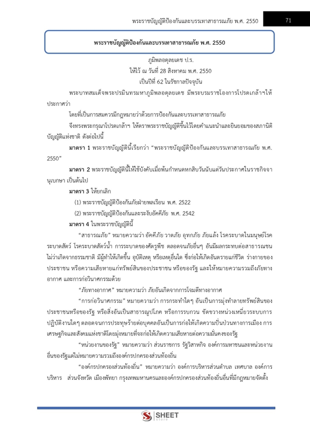 – แนวข้อสอบพระราชบัญญัติป้องกันและบรรเทาสาธารณภัย พ.ศ. 2550