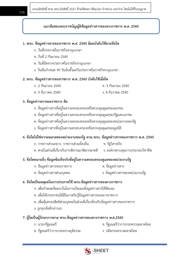 – แนวข้อสอบพระราชบัญญัติข้อมูลข่าวสารของราชการ พ.ศ.2540