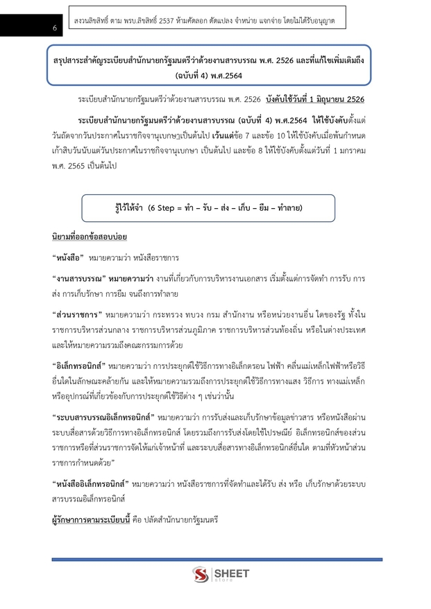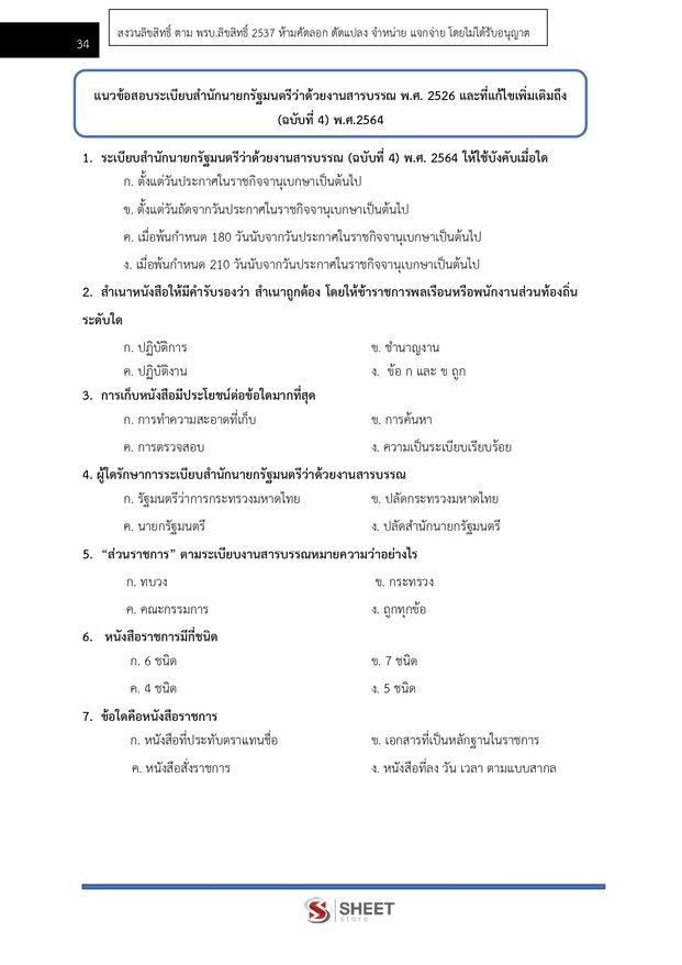 – แนวข้อสอบระเบียบสำนักนายกรัฐมนตรีว่าด้วยงานสารบรรณ พ.ศ. 2526 และที่แก้ไขเพิ่มเติมถึง (ฉบับที่ 4) พ.ศ.2564