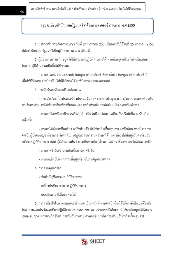– สรุประเบียบสำนักนายกรัฐมนตรีว่าด้วยการลาของข้าราชการ พ.ศ.2555