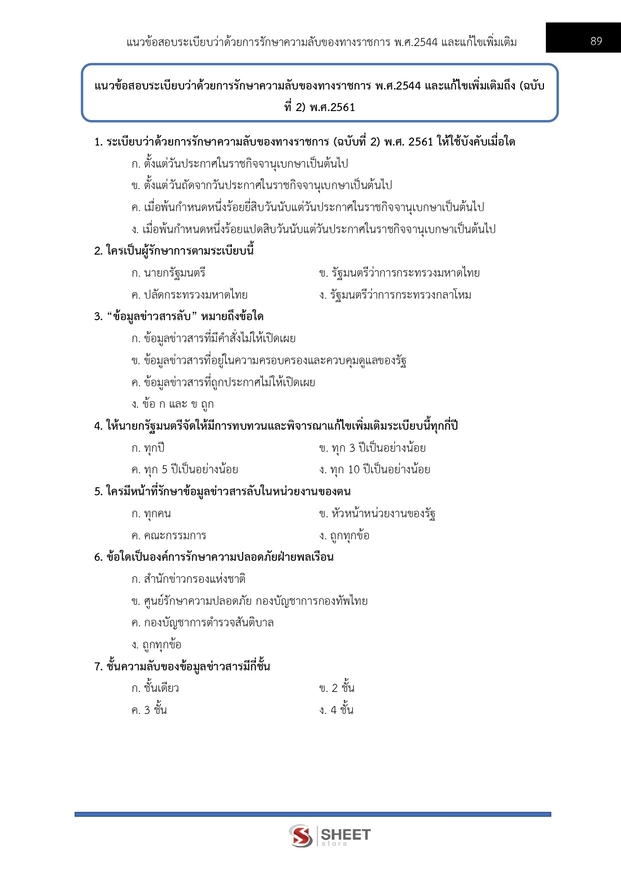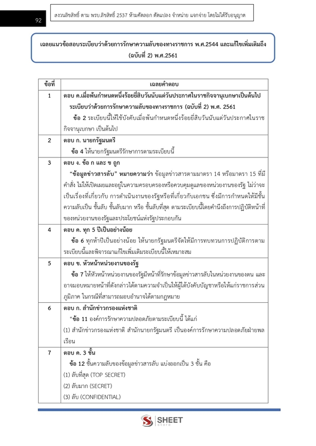 – แนวข้อสอบระเบียบว่าด้วยการรักษาความลับของทางราชการ พ.ศ.2544 และแก้ไขเพิ่มเติม (ฉบับที่ 2) พ.ศ.2561