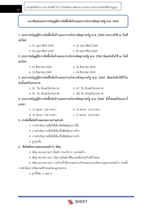 – แนวข้อสอบพระราชบัญญัติการจัดซื้อจัดจ้างและการบริหารพัสดุภาครัฐ พ.ศ.2560